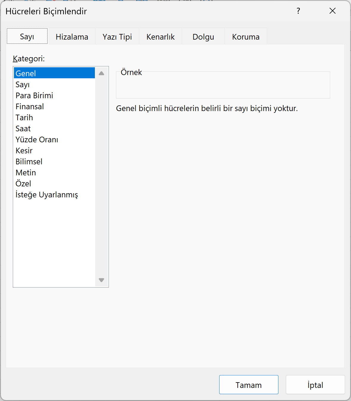Anında Hücre Biçimlendir penceresi açılacak.