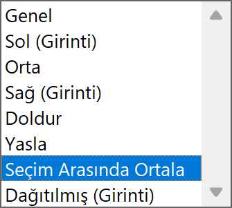 - Yatay açılır menüsünden Seçim Arasında Ortala seçeneğini seç.