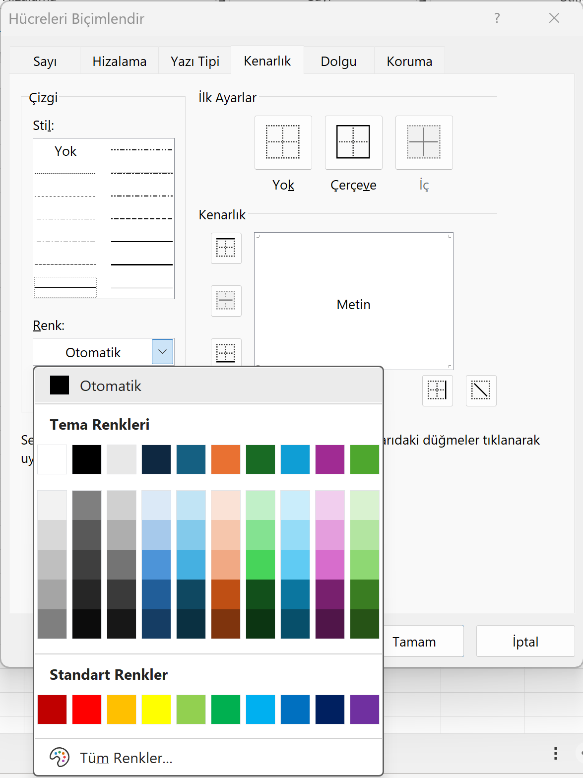 Gördüğün gibi, Hücre Biçimlendir penceresi sadece kenarlık çekmekten ibaret değil. Seçim Arasında Ortala ile hatalı hücre birleştirmeden kurtulmak, raporlarına renkli kenarlıklar ve desenli dolgularla derinlik katmak... Bu küçük pencere, veri analizi ve rapor sunumunda seni sıradan bir kullanıcıdan, işin inceliklerini bilen bir uzmana dönüştürür.