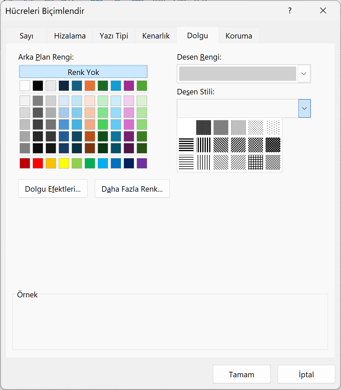 - Dolgu sekmesine geç.