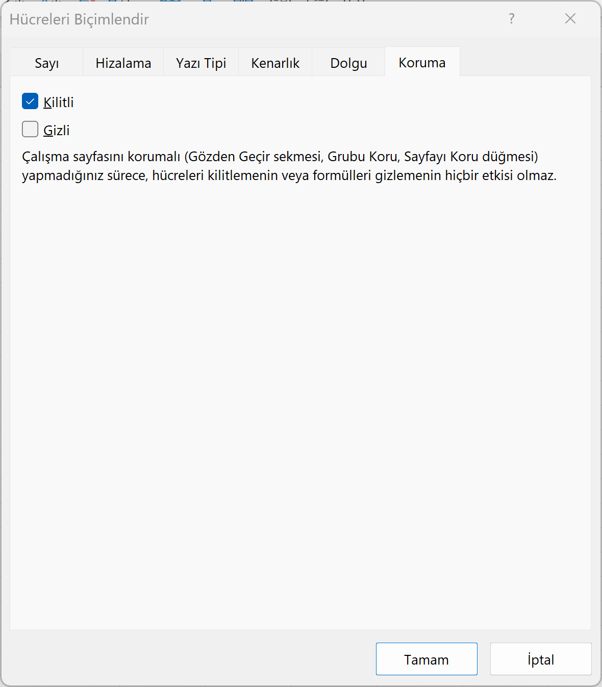 - Dikkat: Bu ayarın çalışması için, son adım olarak Gözden Geçir sekmesinden Sayfayı Koru komutunu kullanman gerekir.